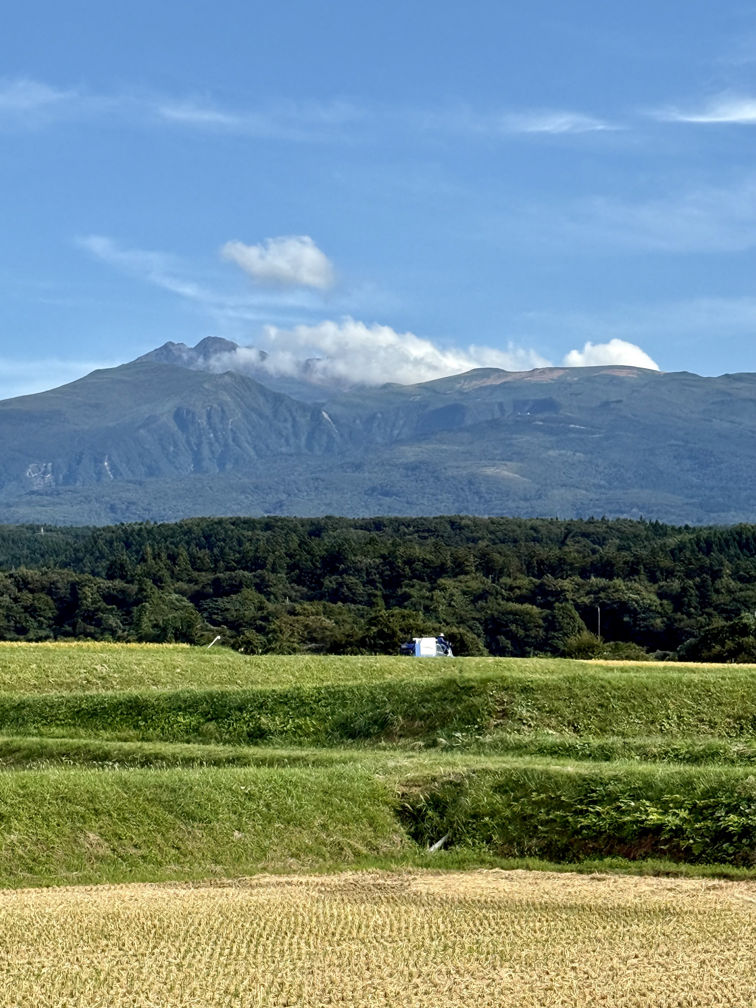鳥海山と稲刈り。