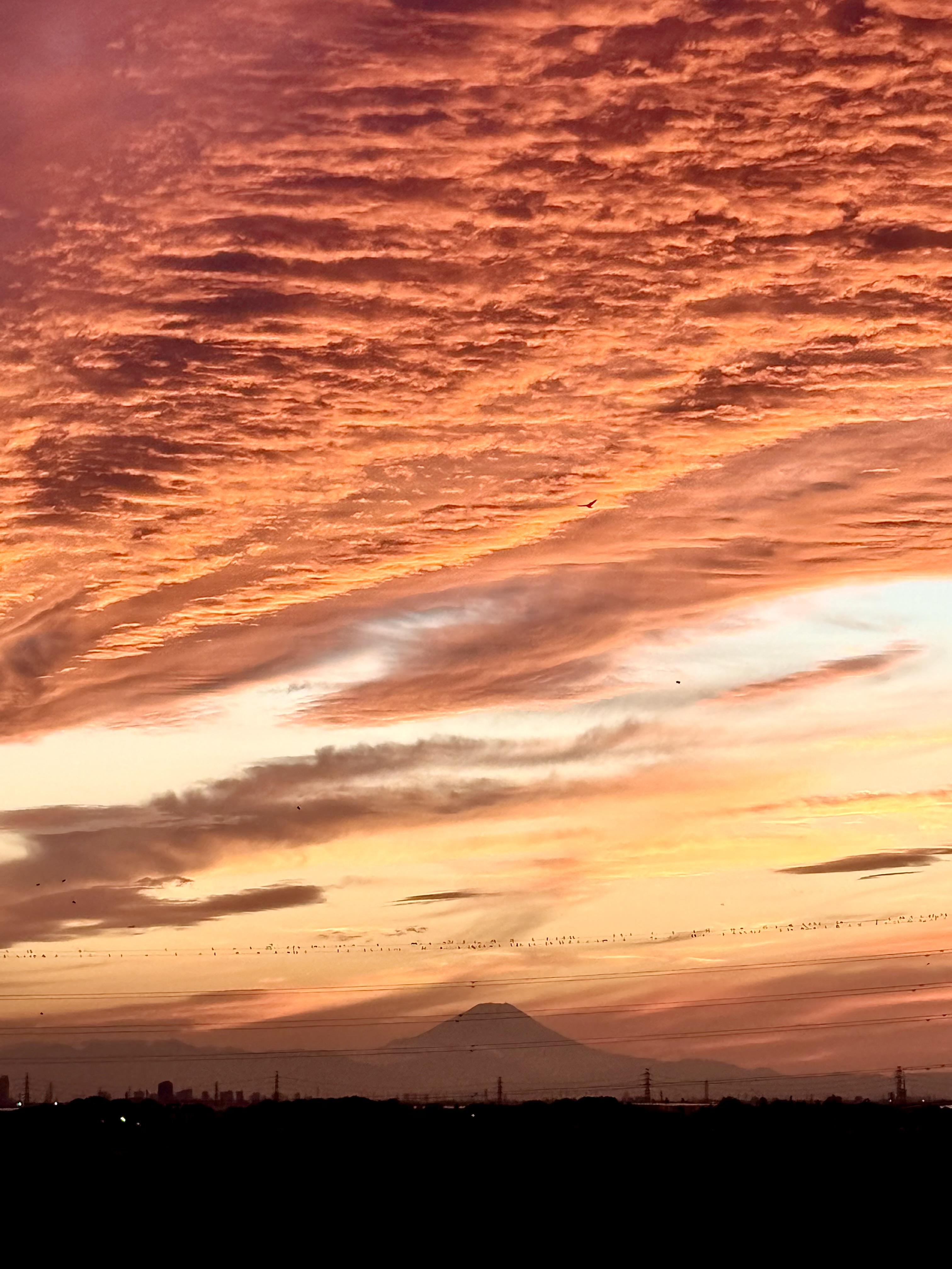 夕焼けと富士山。