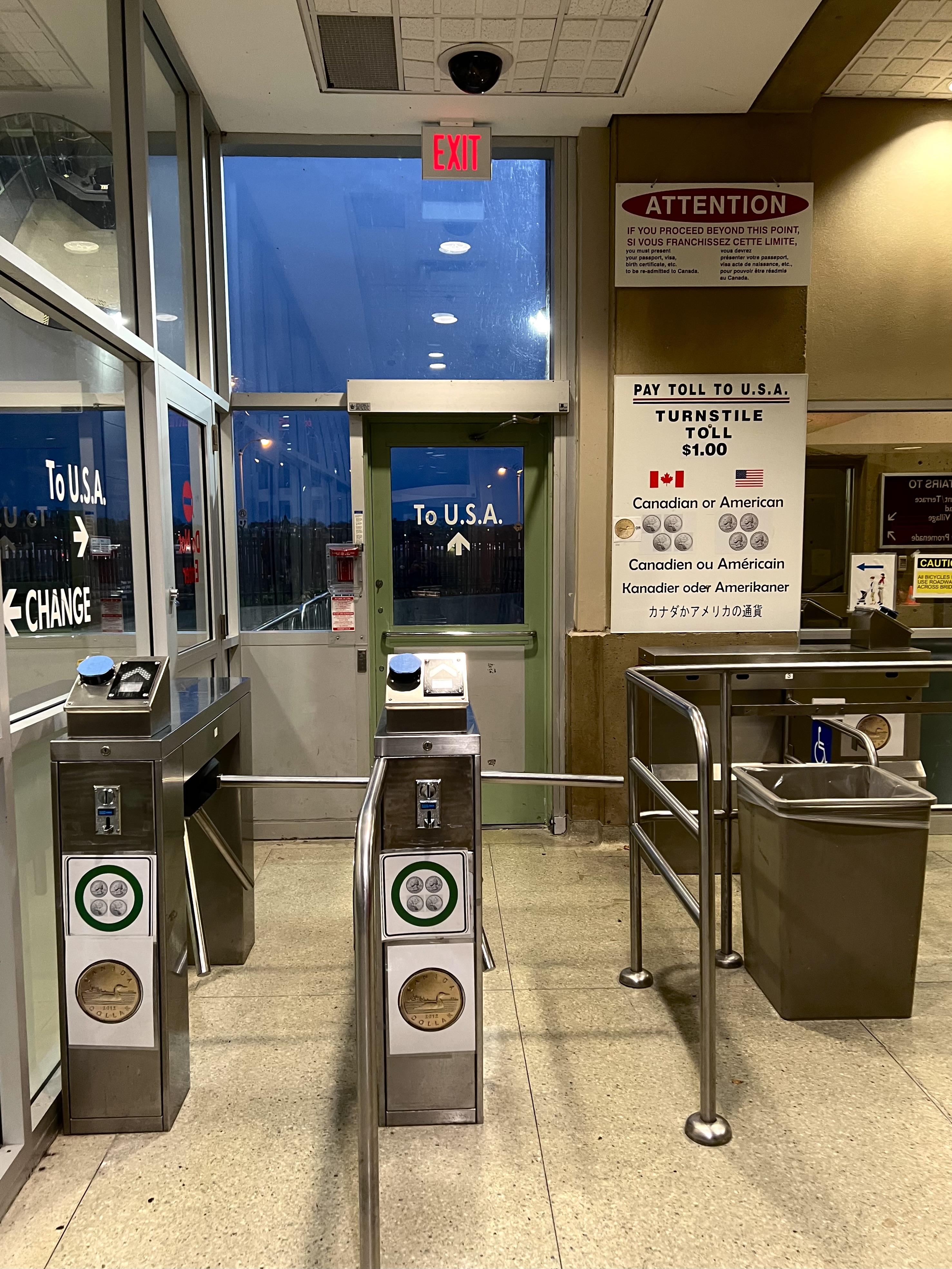 自動改札機で1ドル払えば、歩いて橋を渡ってアメリカ側にも行けます。